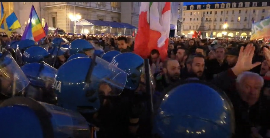 Torino – Tensione e scontri alla fiaccolata del 25 Aprile: “Fuori le bandiere Nato”, cariche della polizia