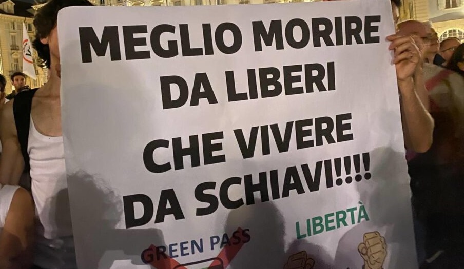 Torino – Torna la protesta contro il Green Pass, in 3mila in piazza Castello. Insulti a Draghi e Burioni