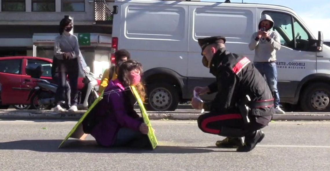 Obiettivo della protesta è Leonardo, colosso italiano dell’industria militare: “Lo scorso 10 marzo – è la nota di Extinction Rebellion’ – “mentre l’Italia sprofondava in una nuova “zona rossa”, le commissioni Difesa di Camera e Senato hanno chiesto di beneficiare di una parte dei 209 miliardi di euro in arrivo da Bruxelles destinati alla Next e alla transizione ecologica. La richiesta di tali benefici non è stata accolta dal Governo ma tutto ciò non basta. Quando vediamo il tentativo di ricevere fondi destinati all’ambiente da parte di un’industria bellica, ci sentiamo disgustati e allarmati. Abbiamo bisogno di combattere per un mondo diverso”.
