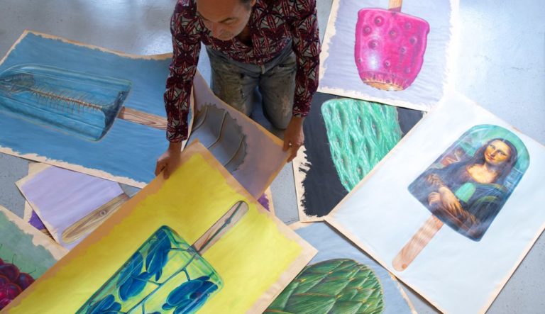 Nelle sue opere, Salvatore Zito mostra una raffinata capacità di sintesi semantica che conduce l’osservatore in una visione onirica neo-pop, densa di ironia. Sceglie lo stick, il gelato col bastoncino, il Pinguino nato nel secolo scorso a Torino, e lo trasforma in un’icona tributo alla città.