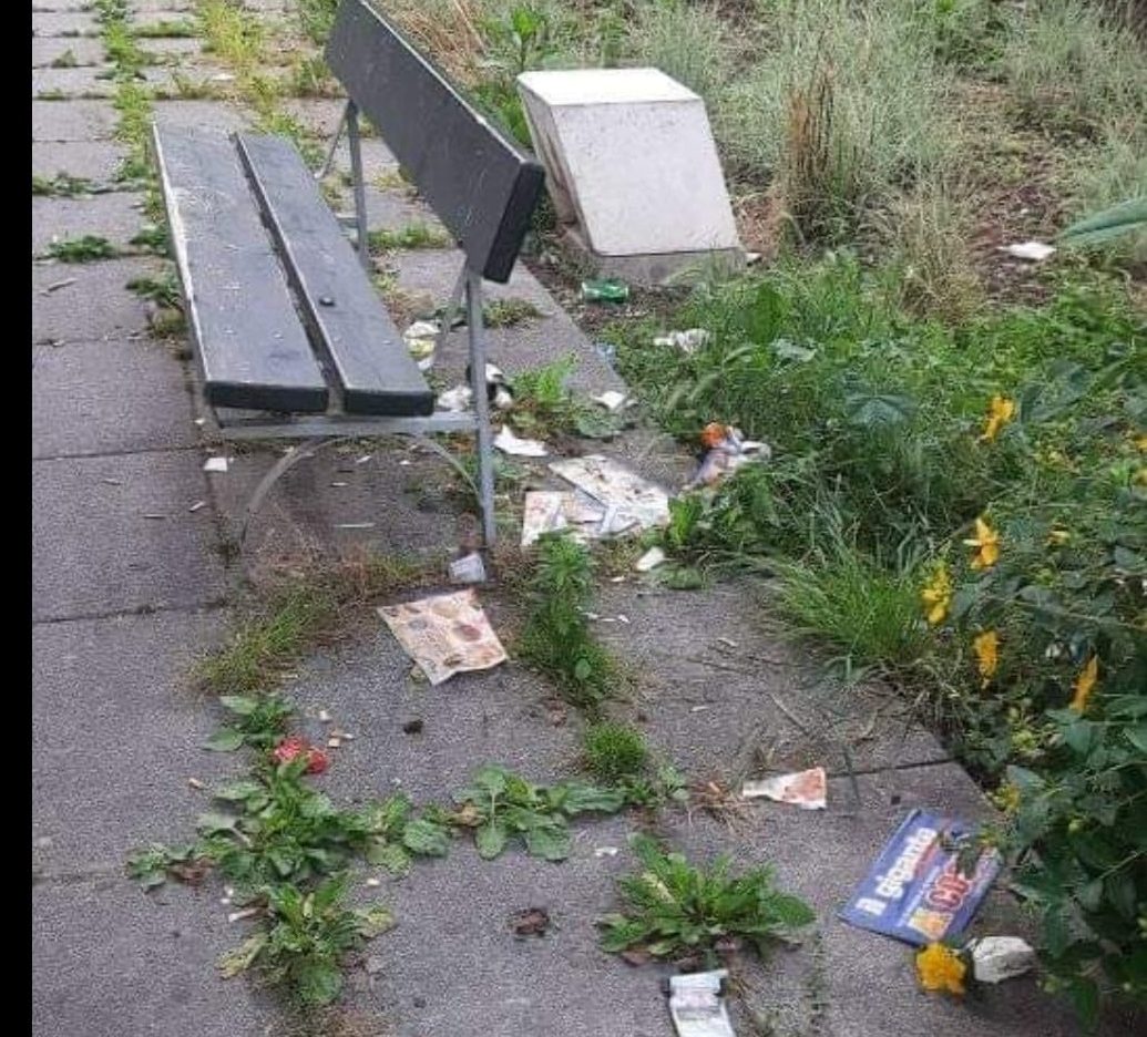 In queste immagini si vede chiaramente lo stato di degrado dell’area verde, un tempo amata e popolata dai residenti, ed oggi una sorta di “giardino degli orrori”.