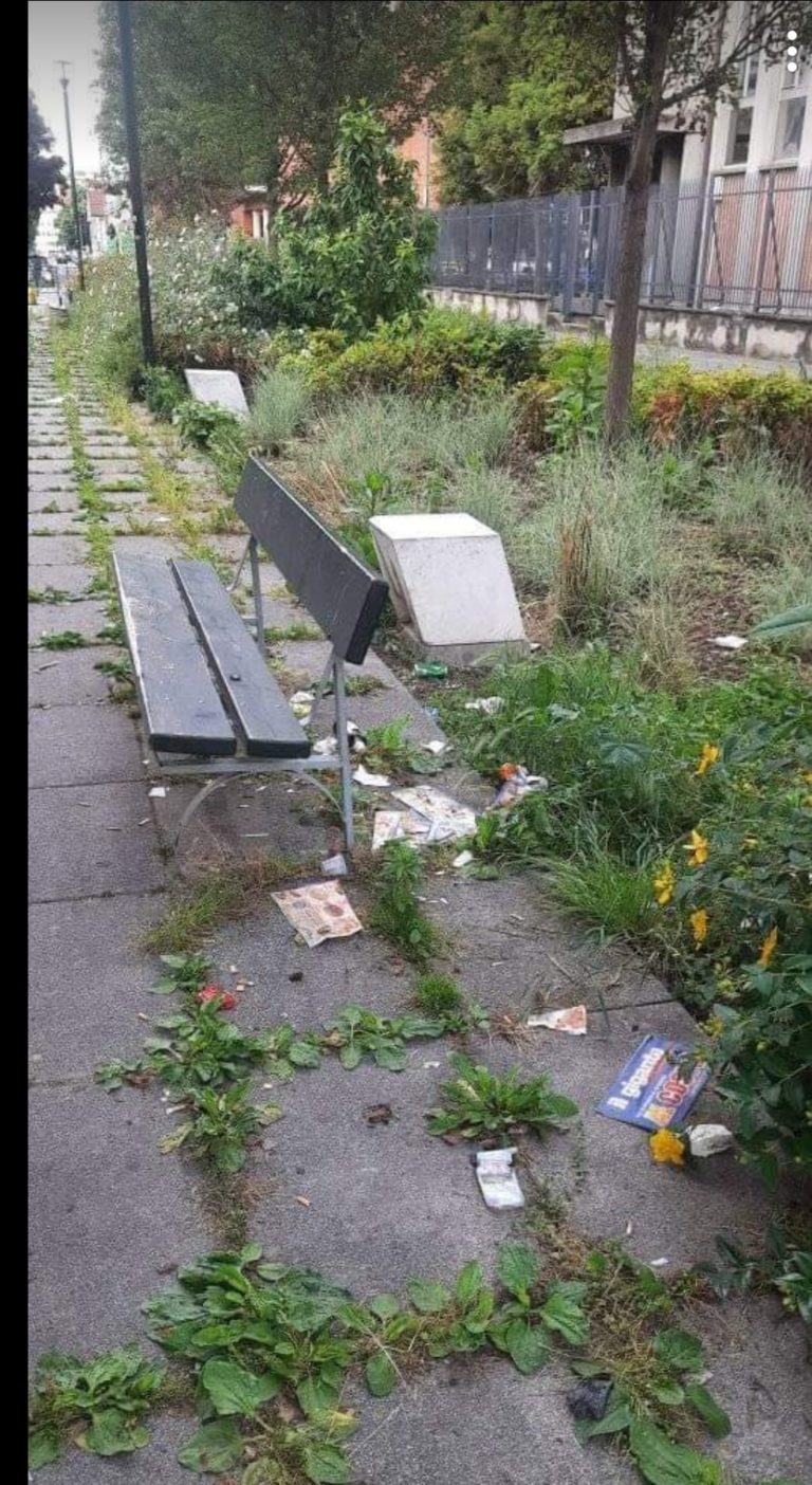 In queste immagini si vede chiaramente lo stato di degrado dell’area verde, un tempo amata e popolata dai residenti, ed oggi una sorta di “giardino degli orrori”.