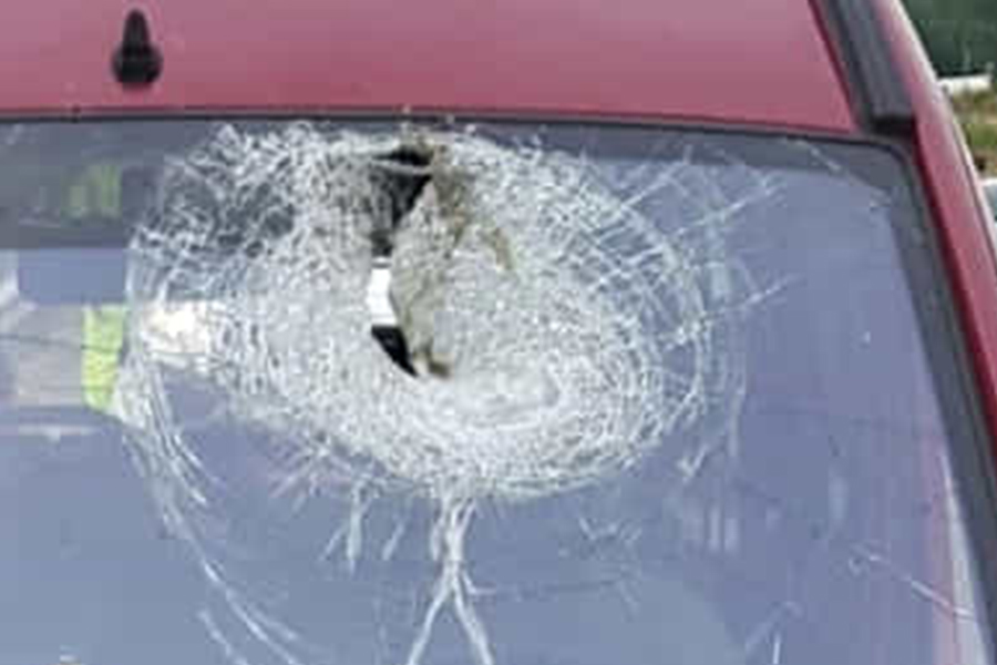 L’auto era appena entrata dallo svincolo di Stupinigi in direzione nord Milano-Aosta, quando è stata colpita in pieno dal detrito che ha sfondato il parabrezza ed è uscito dal lunotto posteriore, senza colpirlo.